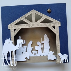 Oct 2023 Card Club: Project #5 Nativity Diorama Cardby: Kelly Entz, Stamping With Kelly