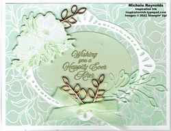 Note: You are using the solid oval with the sentiment heat embossed on it for this project. Keep the hatch marked oval frame cut out for use on another project.