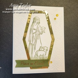 U sing the Shepherd's Care stamp set, Distresed Tile 3D Embossing Folder, Nested Essentials Dies & Stylish Shapes Dies for a simple Christmas card design!