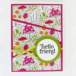 Toadstool Gardens Pieced Hello Friend Cardby: Leslie Benson